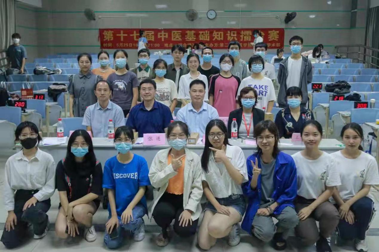 为了加强学院学风建设,激发学生学习热情,促进学生之间交流,巩固医学基础知识,2022年5月25日晚六点半,伟德国际1946学生会学术部主办的“第十七届中医基础知识擂台赛”在大学城校区综合楼202举行。本次比赛邀请到学校唐永祥老师、张进老师、王文竹老师、徐进文老师作为评委老师,学院陈大伟副院长、学工办许丽梅老师、张奕明老师出席本次活动。