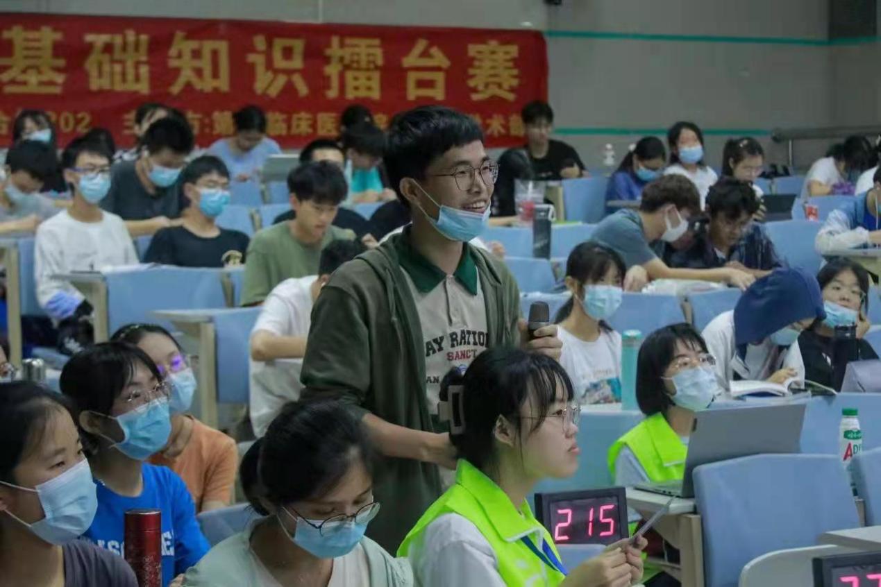本次比赛分三轮进行。首先是第一轮必答题——“争分夺秒”,其中第一环节是“一鸣惊人”。20级中八九代表选手凭借牢靠的基础知识赢得了现场老师同学们的掌声;第二环节是“心有灵犀”,20级中五2班的选手配合默契,医学基础知识扎实,表现优异。这一环节将严肃的医学名词融入趣味性极强的“你比我猜”小游戏,让现场的老师和同学们也跃跃欲试。