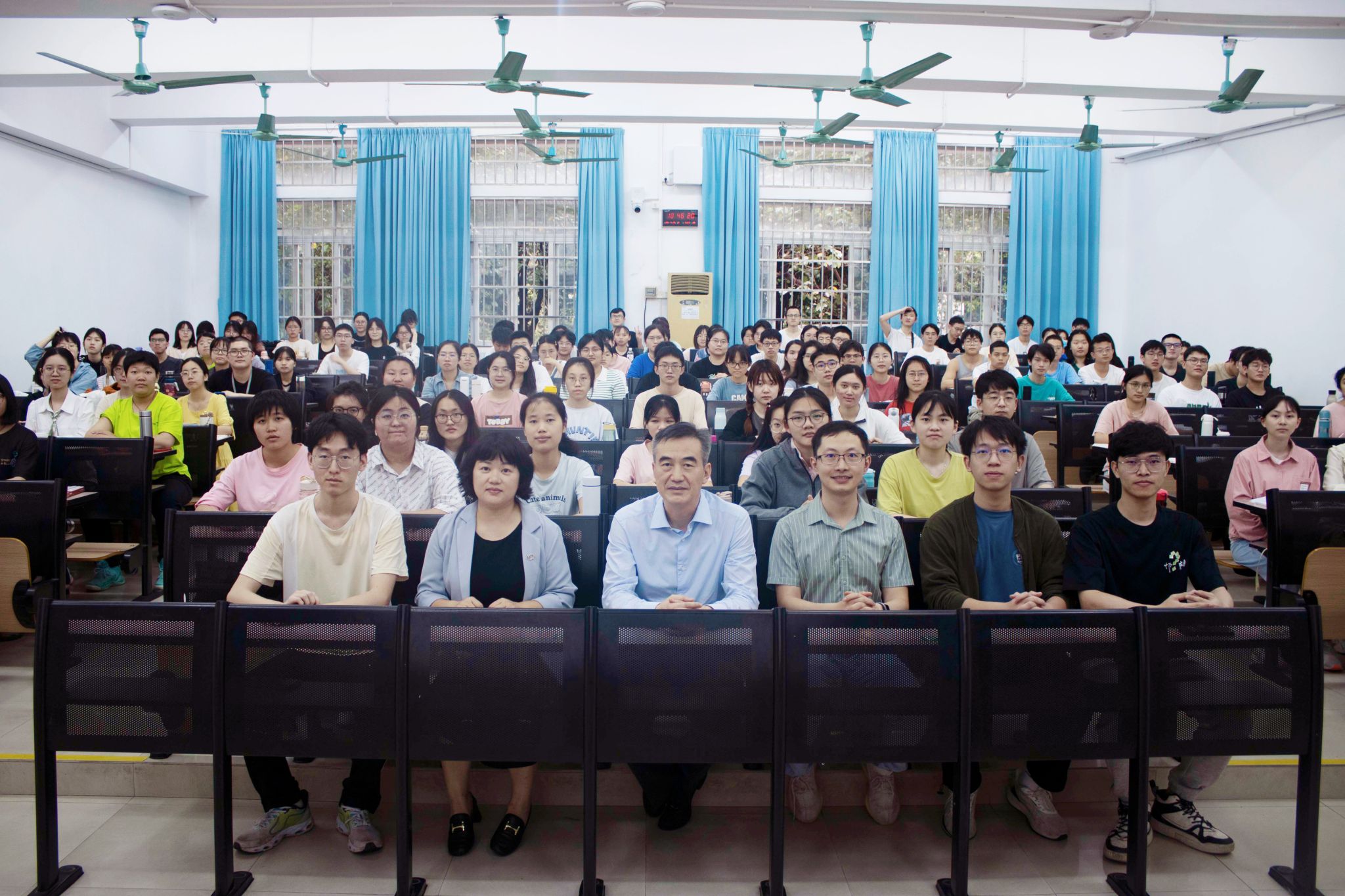 紧接着是互动环节。对于同学提出怎样确立职业发展目标、临床见习需要如何准备等疑问,李俊副院长结合自身经历声情并茂地做出了解答。他提出职业发展有内因和外因,我们要把握自己能选择的内因,例如是否考研,考什么学校和专业。他提倡同学们趁年轻要多学一点,不断深造,提升学历,打好基础,未来才有更多的选择。在工作中,要不忘初心和使命,结合国家、社会和单位发展的需要去选择专科方向,不断提升临床能力,服务病人和社会,成为一名好医生。对于临床实习,他提出将所学的理论知识应用于临床实践中去完成诊疗过程,并在临床实践中发现问题,再回到理论学习中。通过理论和实践的结合,帮助掌握临床知识和技能。至于三个月的见习,他认为同学们最主要的任务是了解医疗系统的运作,体验医生的日常工作内容,引导同学们珍惜现有的学习条件、丰厚的师资以及良好的硬件设施,要趁着年轻尽力拼搏,夯实基础。