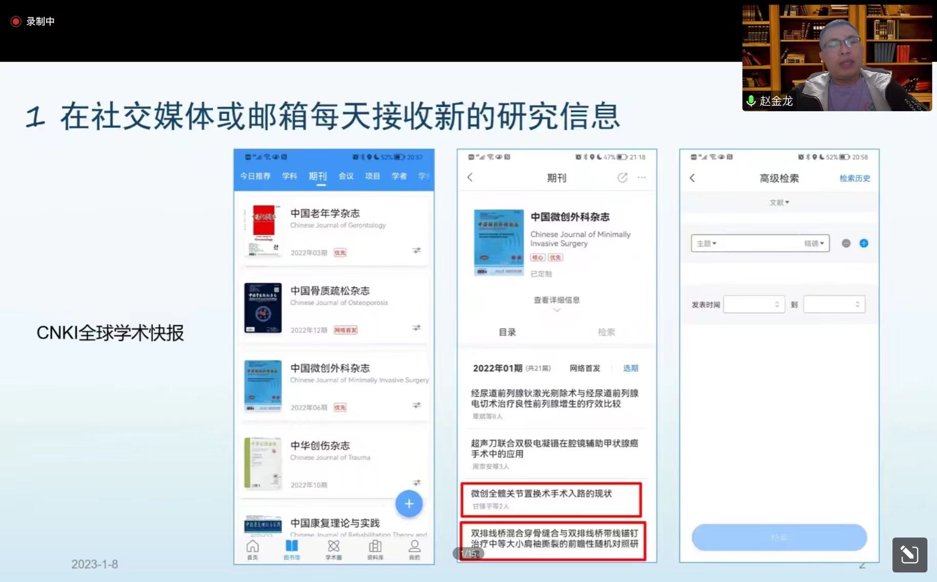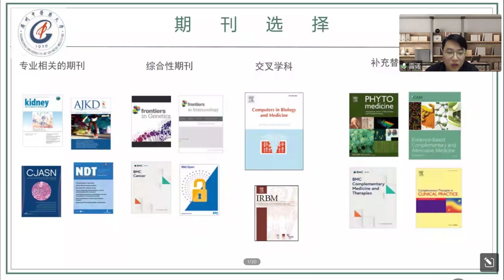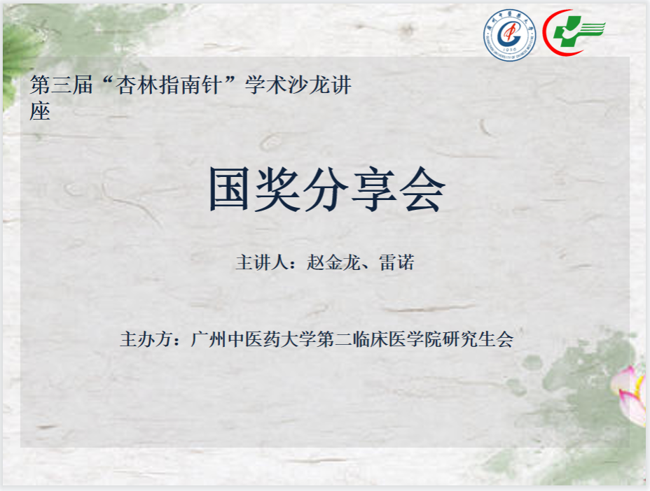 (通讯员:黄楚渝)2023年01月08日19:00,由广州中医药大学伟德国际1946研究生会主办的第三届“杏林指南针”学术沙龙讲座——科研分享会以腾讯会议网络直播的形式顺利举办。本次会议邀请了2022年国家奖学金获得者赵金龙、雷诺两位同学作为嘉宾分享他们在学习及科研方面的经验与心得。