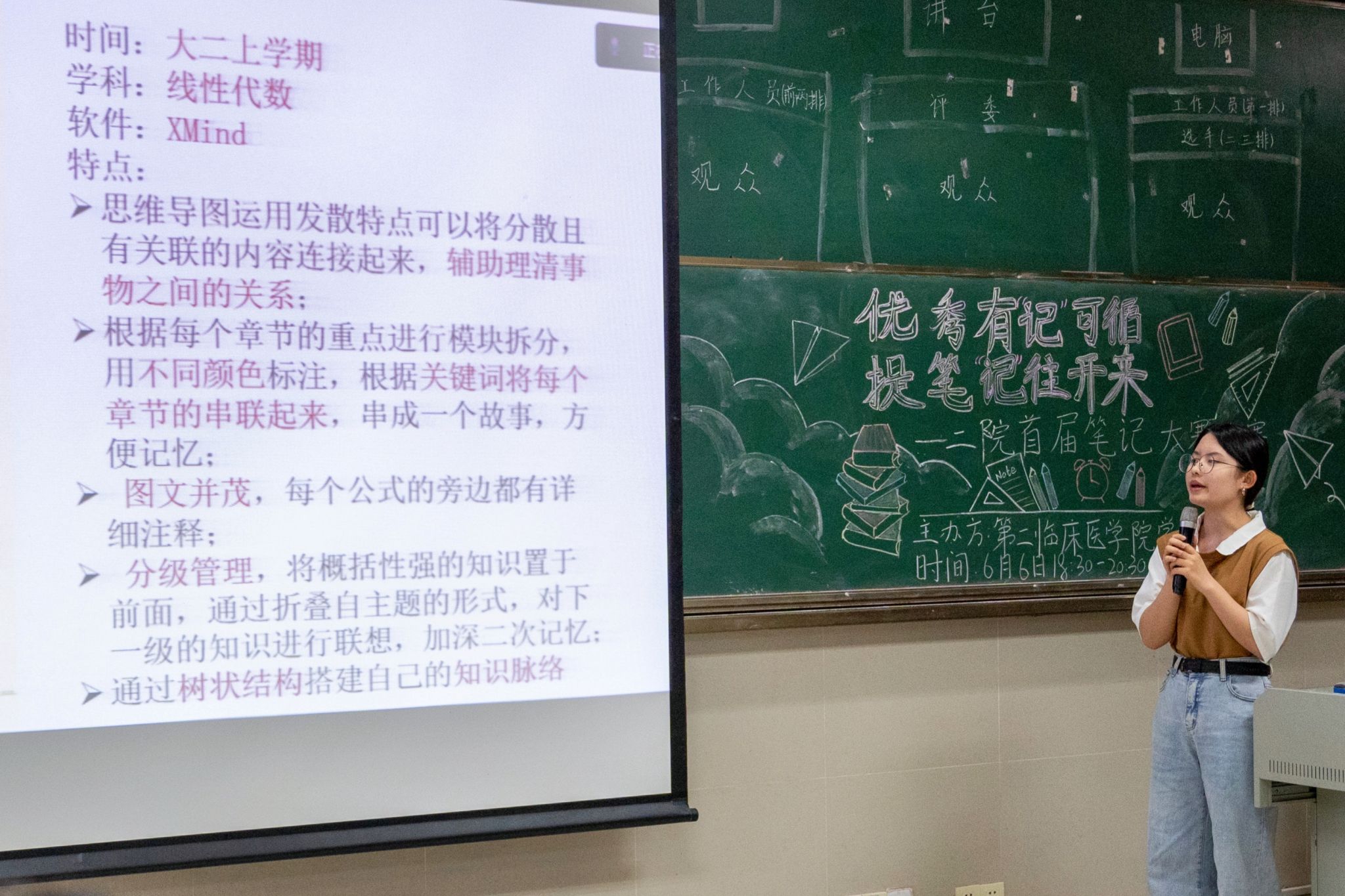 最后,评委老师根据选手表现及笔记情况为各选手评分,选出了一二三等奖及优秀奖若干和最佳观赏奖。