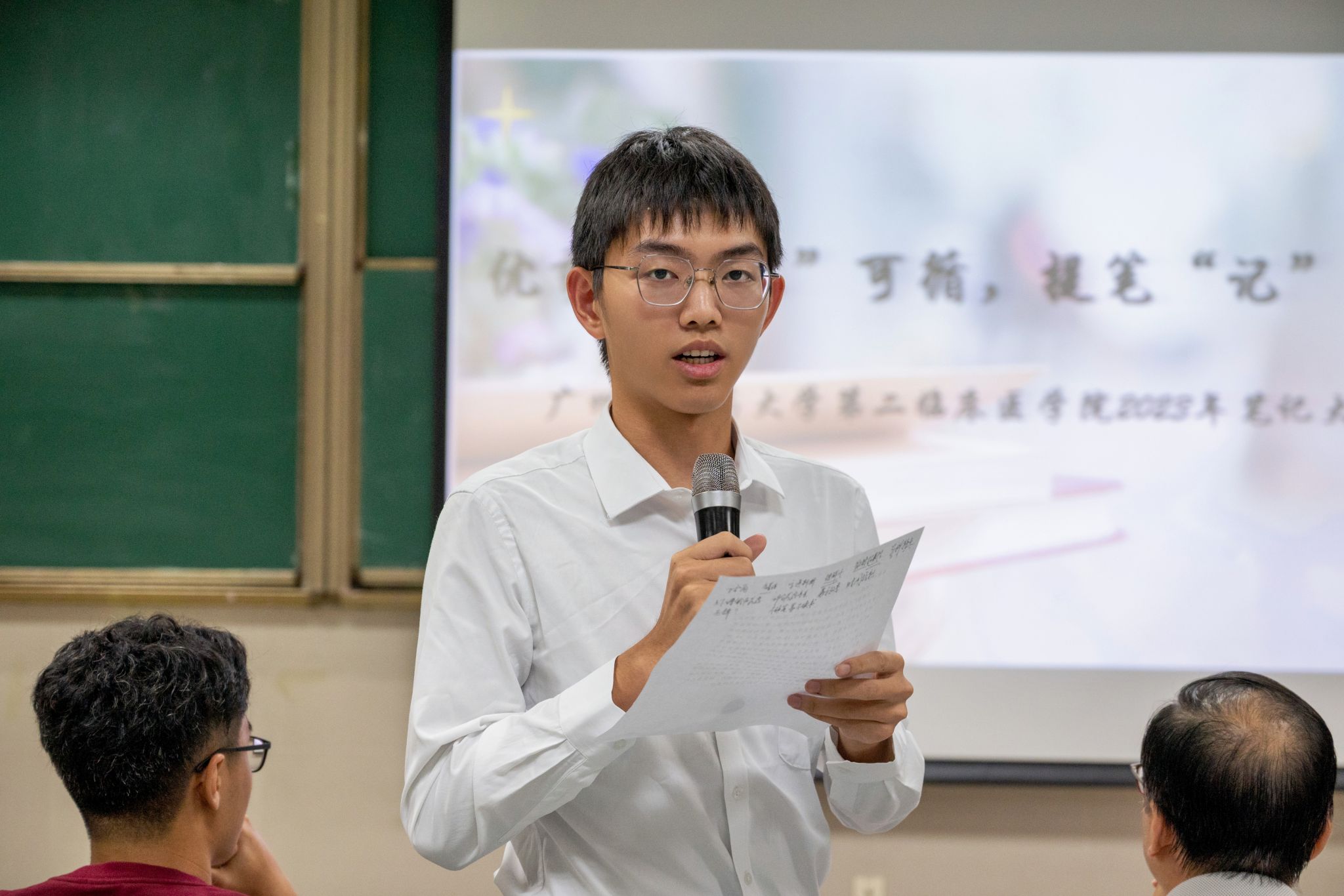 在看完选手们的展示后,评委们进行了精彩的点评。首先是基础医学院的郭文平教授进行点评,郭文平教授首先强调了做笔记的重要性,并肯定了10位选手的笔记,希望这个活动能够一直办下去。接下来校学生会执行主席叶伟杰同学表示,希望大家能够养成做笔记的习惯,将学到的用到学习生活实处。