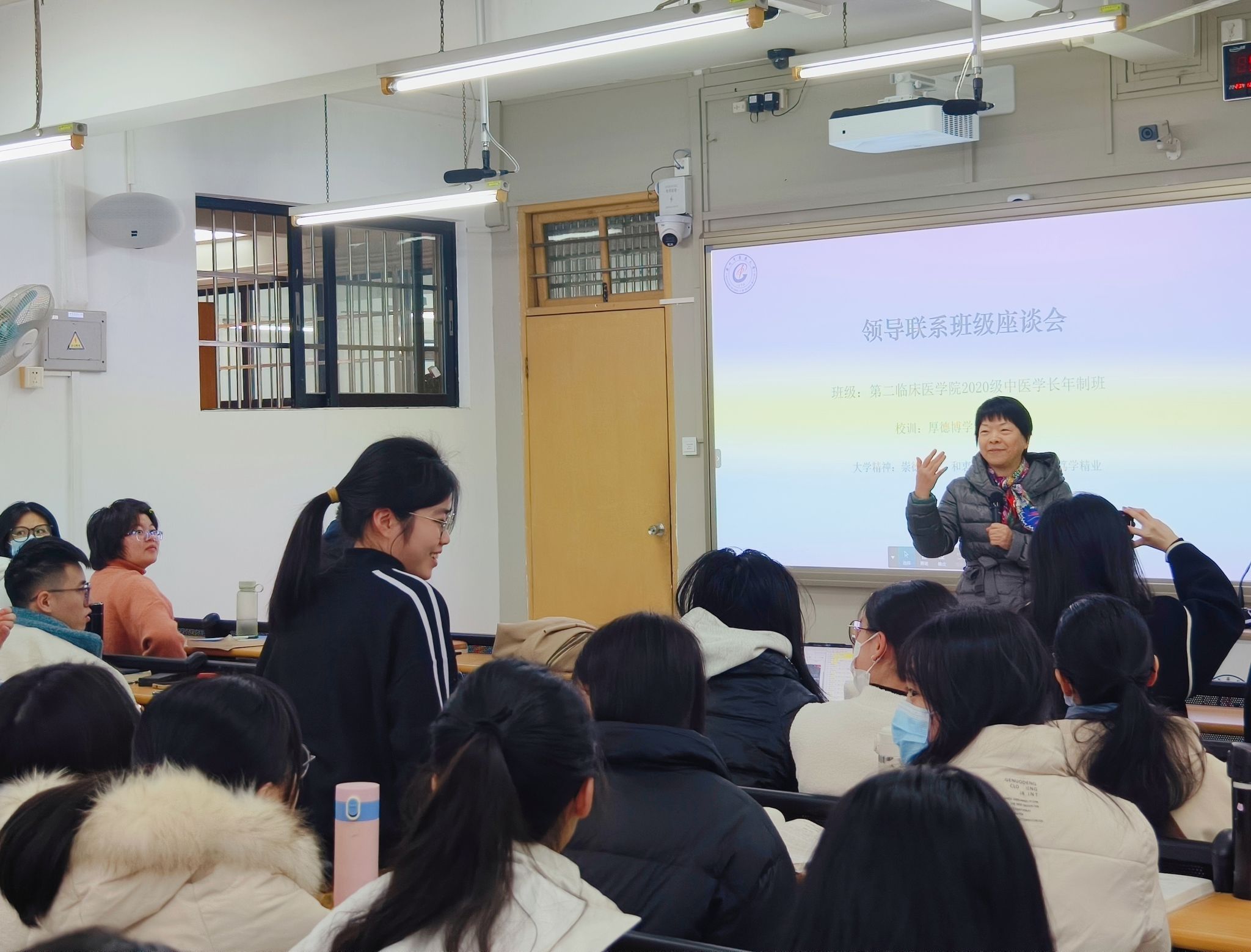 2023年12月21日上午,伟德国际1946副院长卢传坚教授到三元里校区与二院2020级中医学八九年制全体同学一起开展领导联系班级“五个一”活动。