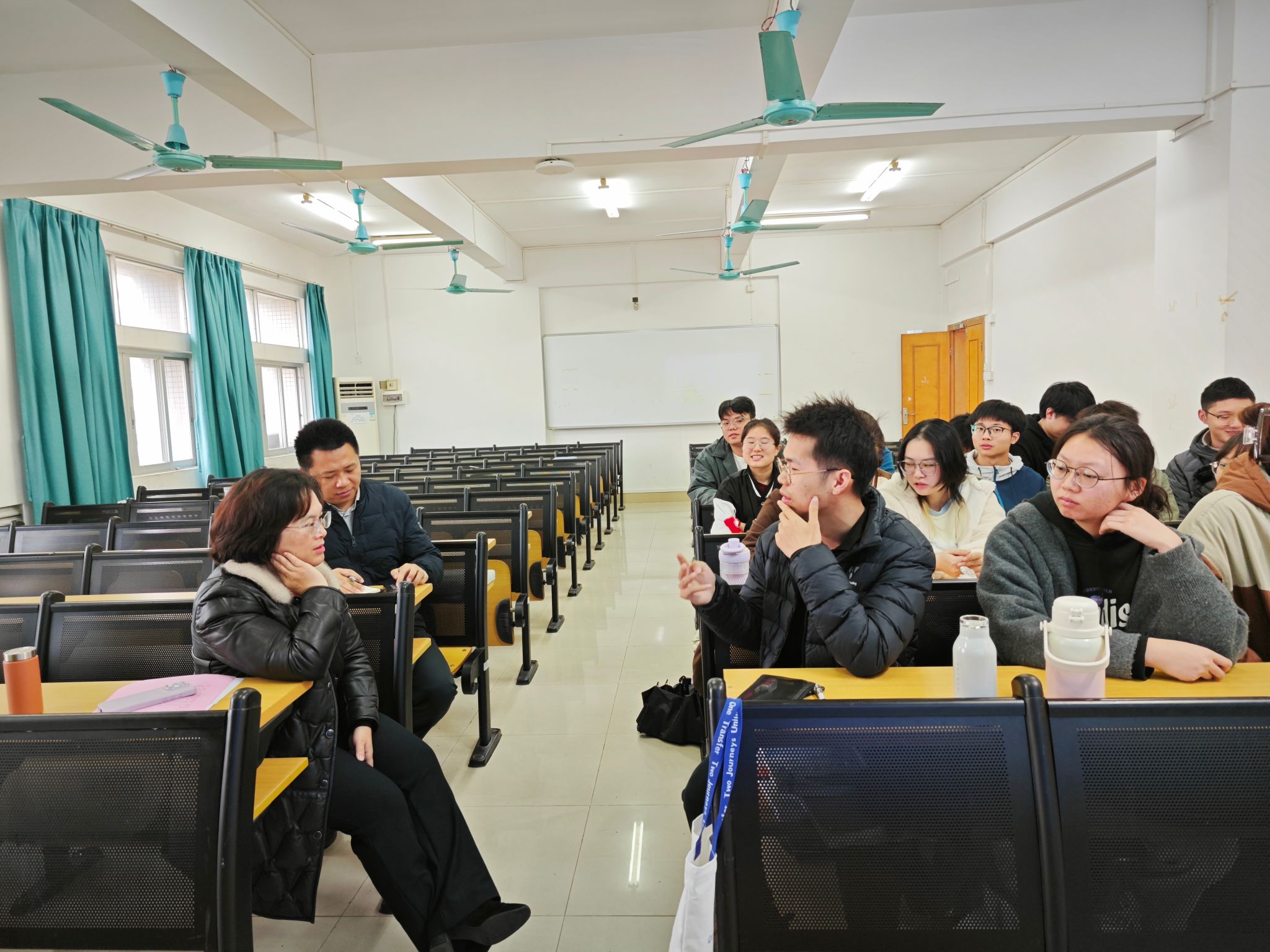 课程结束后,谭副书记与学生代表围坐在一起,展开了一场真诚而热烈的座谈。同学们敞开心扉,畅所欲言。同学们反映了诸如宿舍环境存在亟待解决的问题、食堂口味有待丰富等问题;谈到骨伤专业跟师学习,同学们兴致勃勃地分享了暑假跟师参与手术,亲身体验并学习到精湛手法的难忘经历,同时也提出了一些建设性的建议;在专业课程学习上,虽然整体进展较为顺利,但仍有部分同学表示在知识的理解深度以及融会贯通方面还需要进一步加强;在实践教学方面,大家满心期待能够增加练功法等特色课程或活动,以丰富实践学习的内容。谭副书记认真倾听每一位同学的发言,并鼓励大家要持续深入学习,拓宽视野,提升思想境界。
