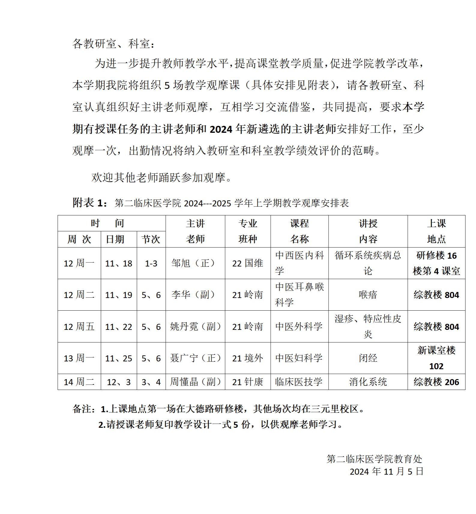 关于组织2024-2025学年上学期示范教学观摩的通知